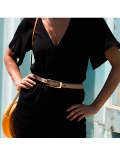 Thinner and more feminine (115 x 2 cm), fall under the spell of my metallic effect buckle.