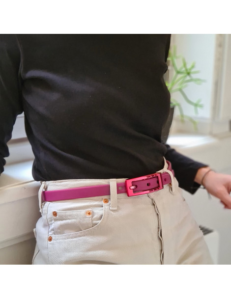 Thinner and more feminine (115 x 2 cm), fall under the spell of my metallic effect buckle.