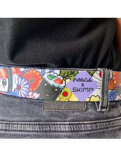 La sushis est une ceinture designée par l'illustratrice lyonnaise Ludivine Nicaud. Cette ceinture est à la fois fun par ses couleurs et originale par ses motifs kawai ! C'est la ceinture rêvée des "sushis addict" et des "salmon lovers"