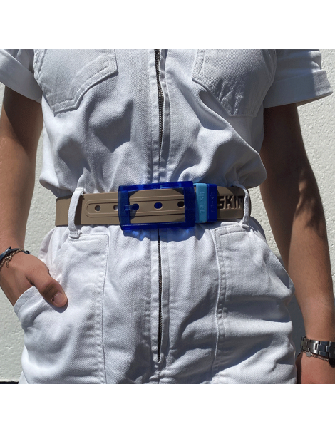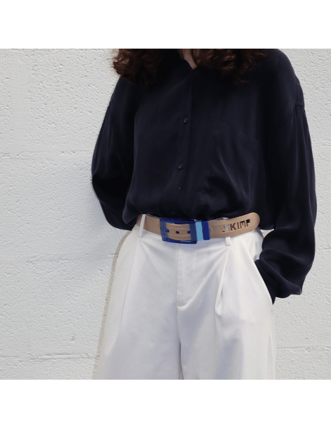 ceinture édition spéciale la saharienne, marron avec passants et boucle bleu